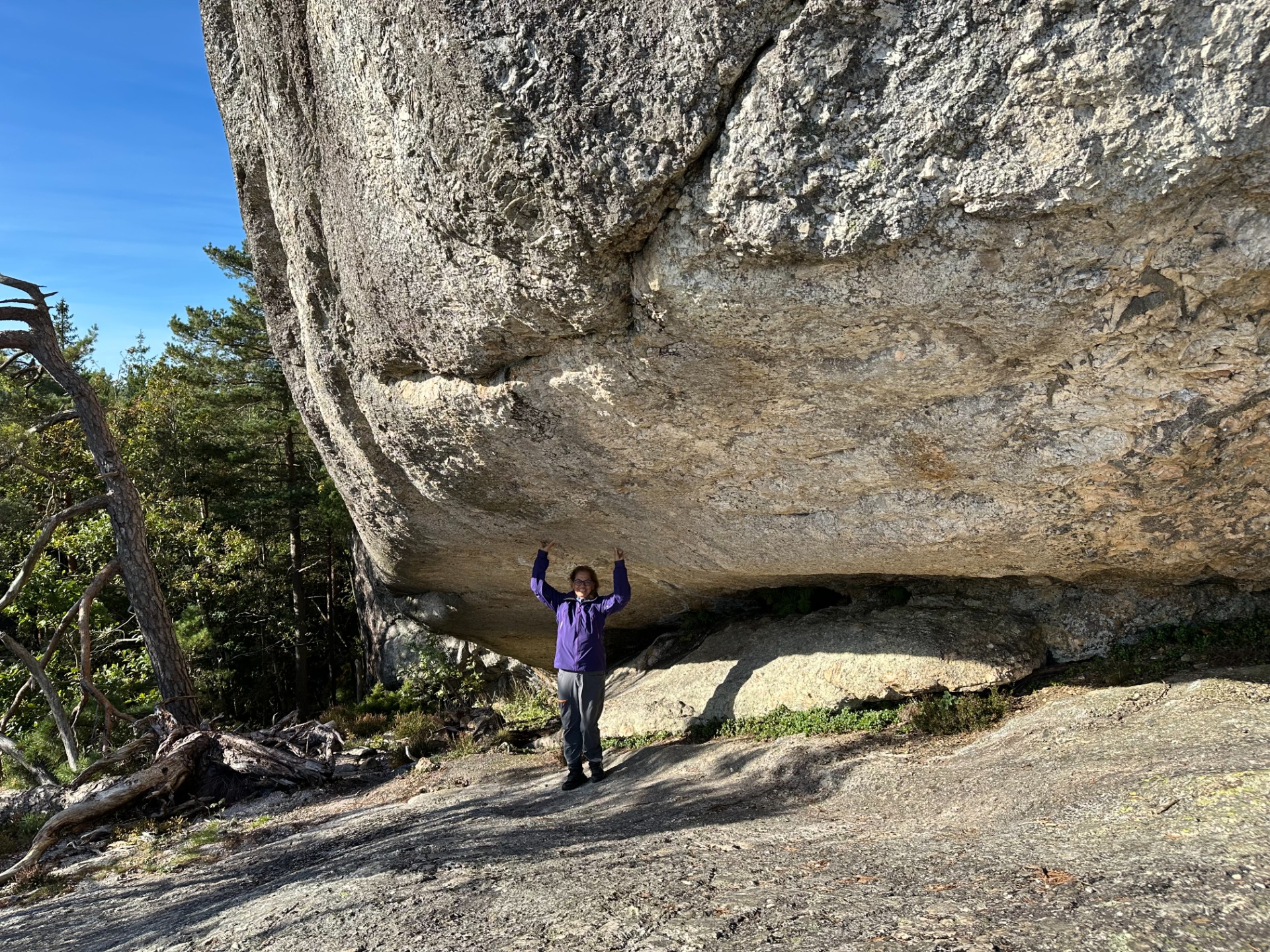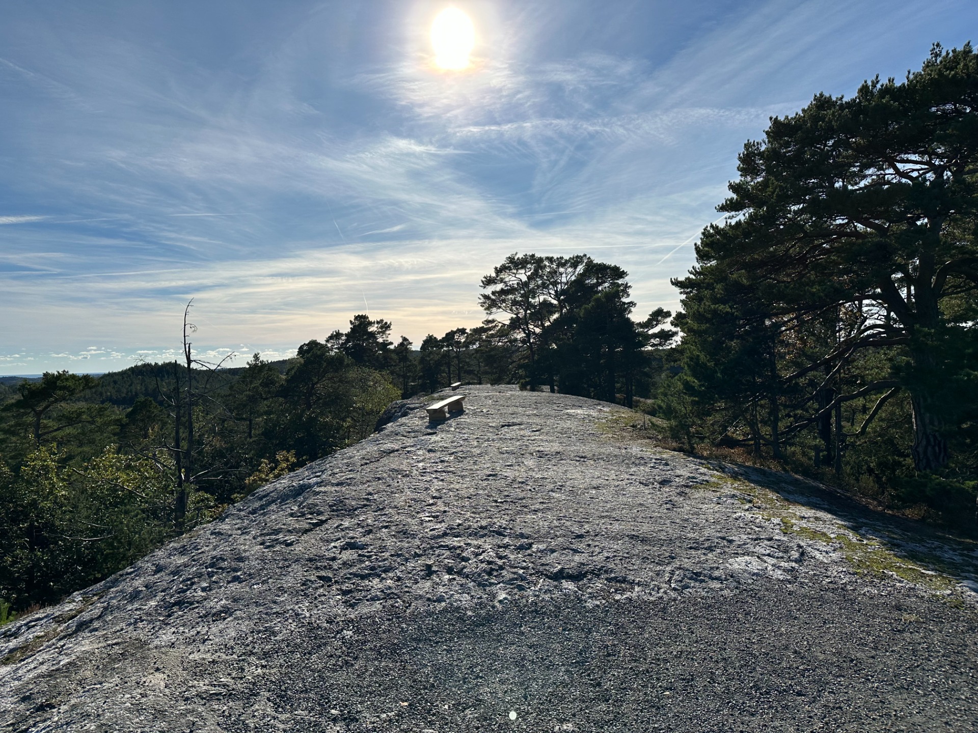 Etter å ha nytt utsikten på toppen følges stien tilbake til trappa. Følg stien videre på nedsiden av Kniben.