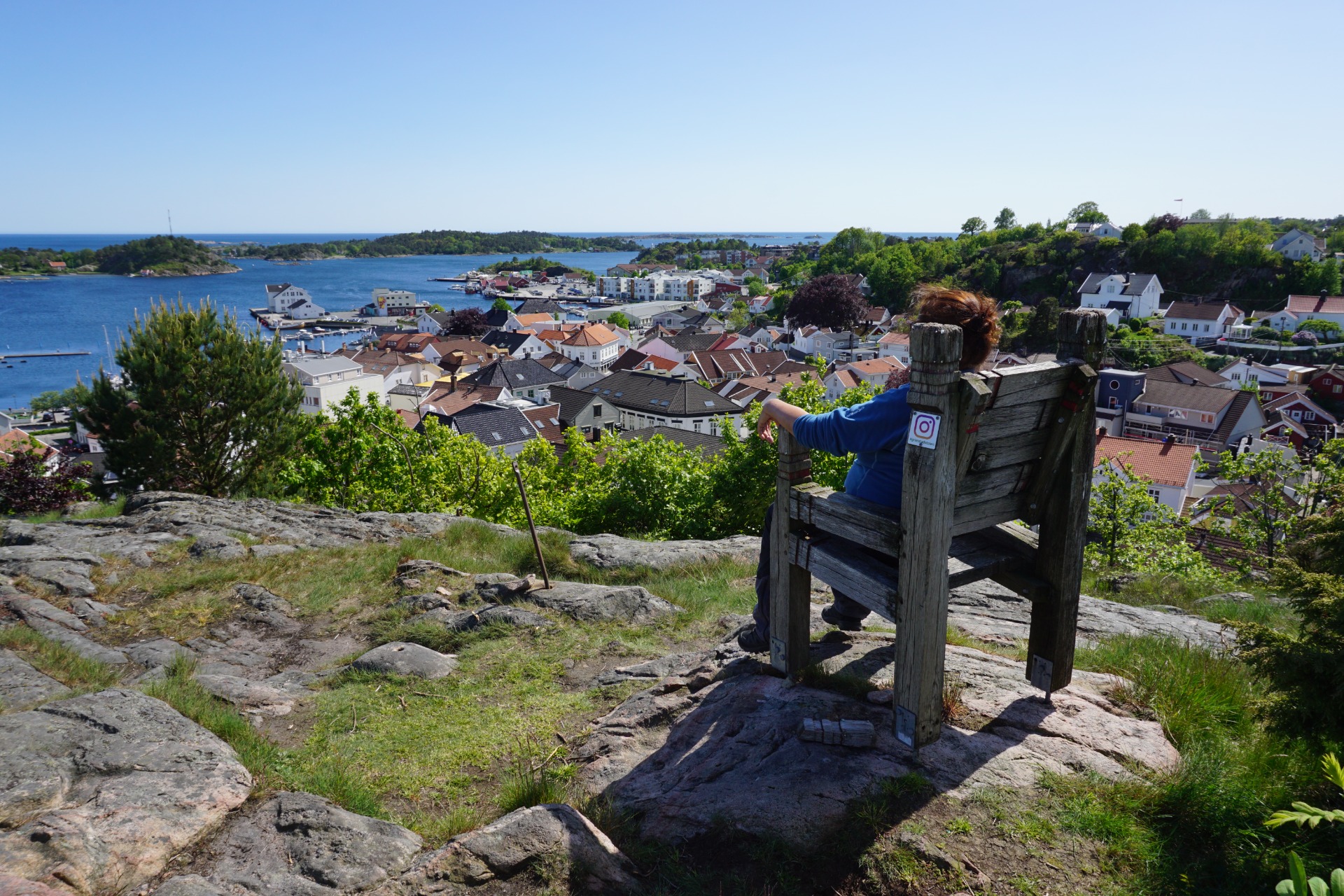 På toppen av bakken (1.15 km), tas til h på sti ned til Kjellvika (badestrand) ved Vikkilen.